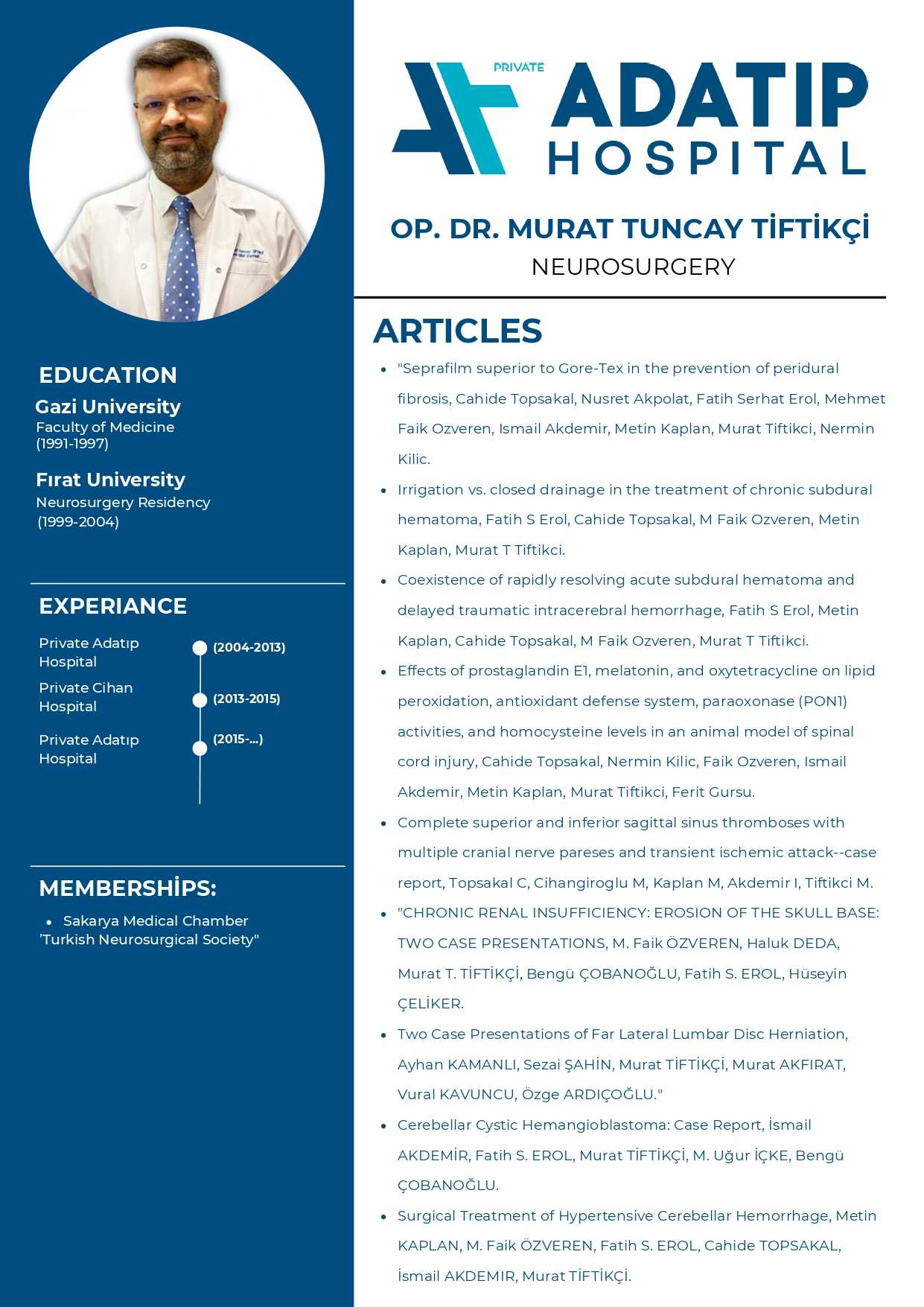 Murat Tiftikci, MD - Cirugía cerebral, espinal y neural